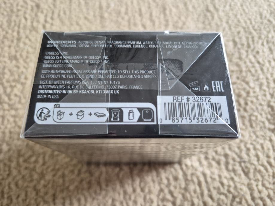 Prodajem potpuno novu, zapakiranu Guess Uomo Intenso Eau de Parfum za muškarce, bočica od 30 ml, idealna i kao poklon. Miris je intenzivna ambery fougère kombinacija svježih gornjih nota talijanskog bergamota, mente i svježeg ozona, s aromatičnim srcem od francuske lavande, timijana, narančina cvijeta, cimeta i kadulje. U bazi dominiraju topli tonovi tonke, sandalovine, benzoin smole i ambre koji ostavljaju dugotrajan, muževan trag na koži. Parfem je namijenjen modernom muškarcu koji voli izražen, ali uglađen miris za svakodnevno nošenje ili posebne prilike