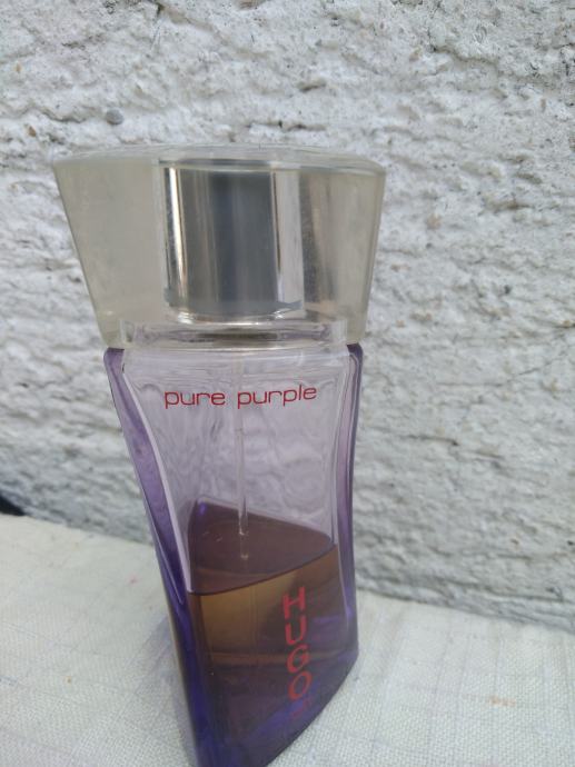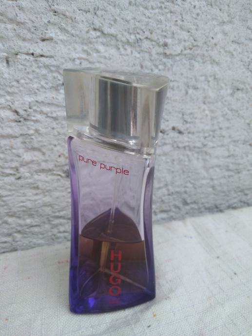 Hugo Boss ženski eau de parfum made in UK u bočici od 50 ml- ostalo 25 ml- Pure Purple je lansiran 2006. Gornje note su nektarina i bijela ciklama; srednja nota je crna ljubičica; bazne note su marcipan, amber i koža.
