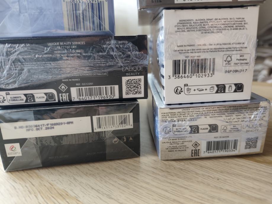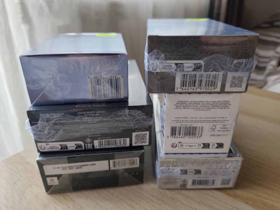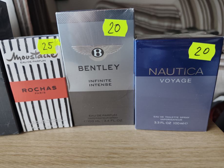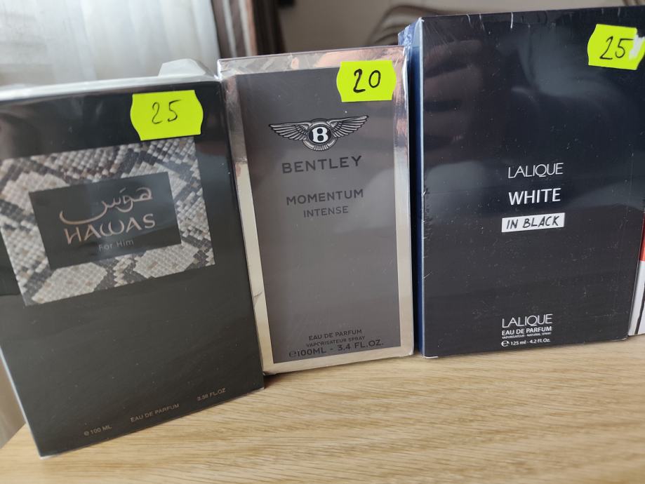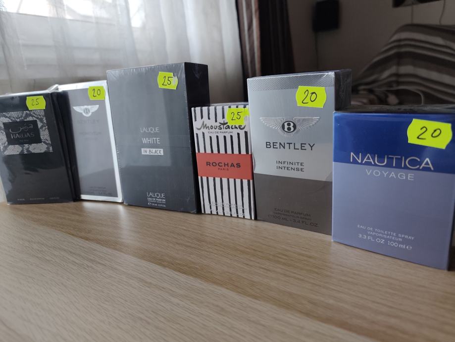 Rasasi Hawas 100ml edp,Nautica Voyage 100ml edt,Lalique White in Black 125ml edp,Bently Momentum Intense 100ml edp,Rochas Moustache 75ml edp, Bentley Infinite intense edp 100ml.