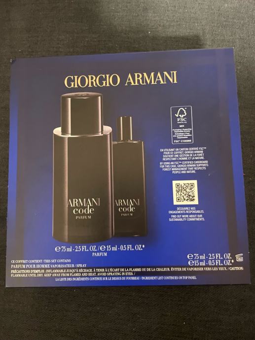 Prodajem novi i nekorišten set - muški parfem Armani code, 75 ml + 15 ml.