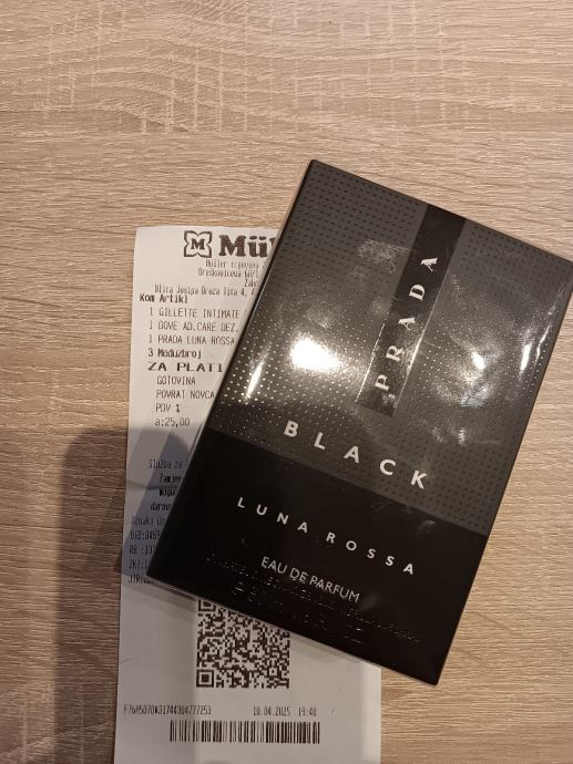Prodaje se original parfem Prada Luna Rossa black 50 ml...parfem je neotvoren i zapakiran...original, kupljen u Mulleru...moguća provjera autentičnosti na bilo koji način...cijena 70 eur...parfem posjeduje original račun, te ga je moguće zamijeniti za bilo koji drugi proizvod te vrijednosti u Mulleru ili za njihovu darovnu karticu sa iznosom od 79.19 eur na njoj...