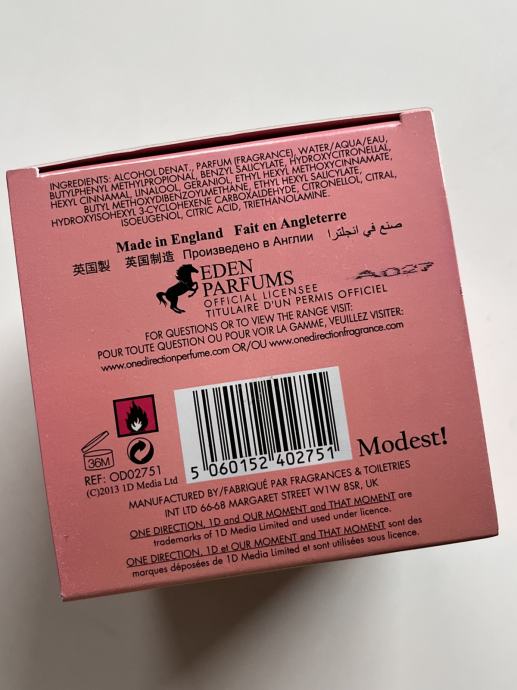 Ovaj mladenački cvjetno-voćni parfem savršen je za fanove One Directiona i idealan za svakodnevnu upotrebu ili kao poseban poklon. Dugotrajna aroma osvaja od prvog dana i budi osjećaj nostalgije na nezaboravne trenutke s omiljenom grupom.
