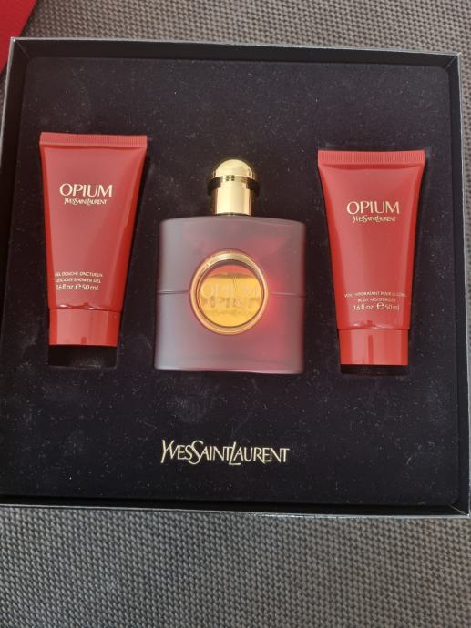 Prodajem zenski parfem Opium u paketu s gel kremom i kremom za hidrataciju.