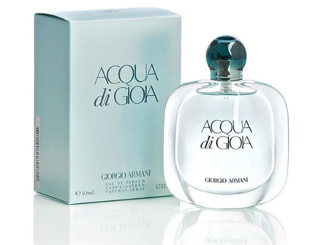 Acqua di Gioia je svjež ženski parfem sa zavodljivim morskim aromama. Njegov miris predstavlja ženu, koja je snažna, dostojanstvena, slobodoumna i u potpunoj harmoniji s prirodom. Inspiracija za miris je bio Armanijev ljetni odmor na otocima Pantelleria i Antigua. Predstavlja bijeg u prirodu, nebeski prostor, u kojem se punimo energijom i uravnotežujemo tijelo i duh. Bočica ima oblik prozirne, prozračne kapljice vode. Osvježavajuće citrusne gornje note se prelijevaju u cvjetno srce vodenog jasmina, božura i crvenog papra. Miris u harmoniji s prirodom.