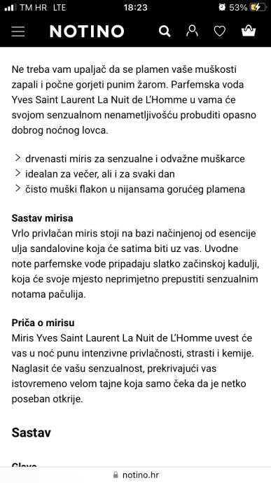 Prodajem muški original zapakirani miris Yves Saint Laurent La Nuit de L’Homme, eau de parfum, 40 ml.