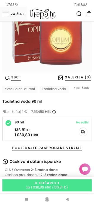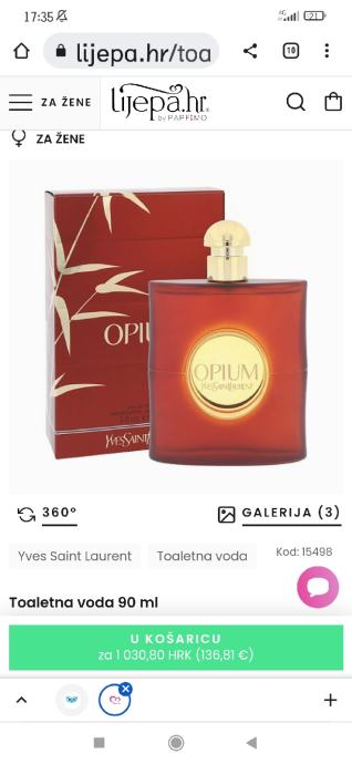 Prodajem Original Parfem Opium 90 ml. Još uvijek je zapakiran. Mogućnost preuzimanja Zg.