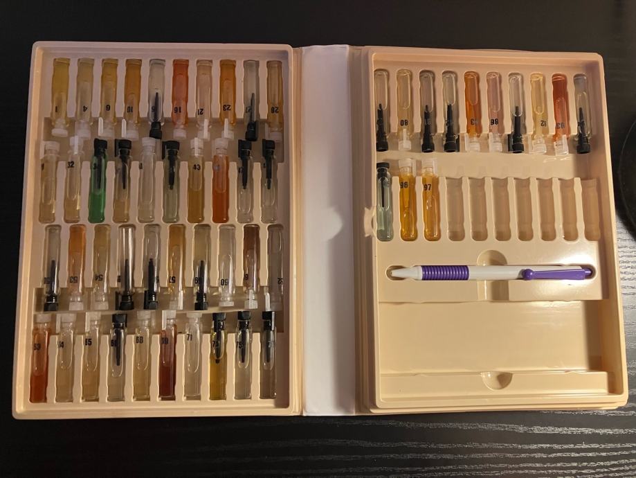 Pierre Marten kaseta sa 53 uzorka parfema. Super stanje-14 fotografija u oglasu. Ovih 53 uzorka su nekorišteni. Cijena je 35 EUR za osobno preuzimanje u Popovači ili Ivanić Gradu. Troškovi slanja su dodatna 3 EUR Tiskom ili Poštom za unaprijed uplatu na račun ili 5 EUR za plaćanje pouzećem. Pakiram tako da je sigurno u transportu. Odgovaram na pozive, poruke putem Njuškala, SMS, Viber.