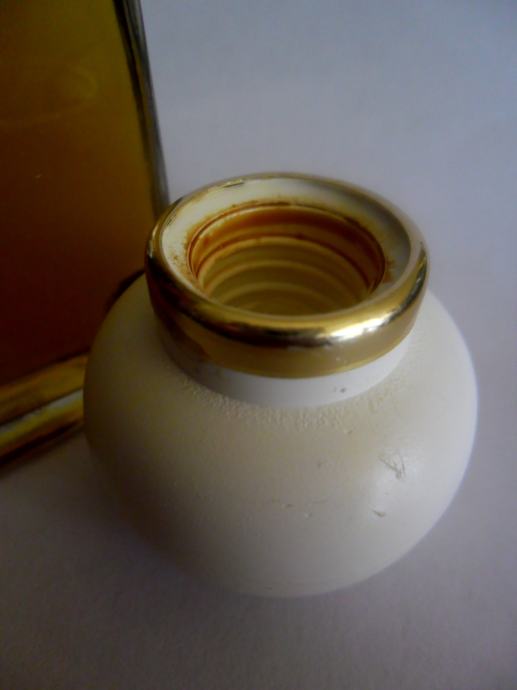 Nedostaci ambalaže vidljivi - nedostaje, osim kutije, prepoznatljiv bijeli "oklop" s imitacijom krokodilske kože oko bočice i podacima koji se na njemu nalaze; ovdje ne mogu stavljati linkove, ali koga zanima, naći će detalje na stranim oglasnim stranicama na internetu i kako bočica izgleda unutar njega (Etsy na pr.) Čep ima neznatne ogrebotine. Prodajem miris u prvom planu.