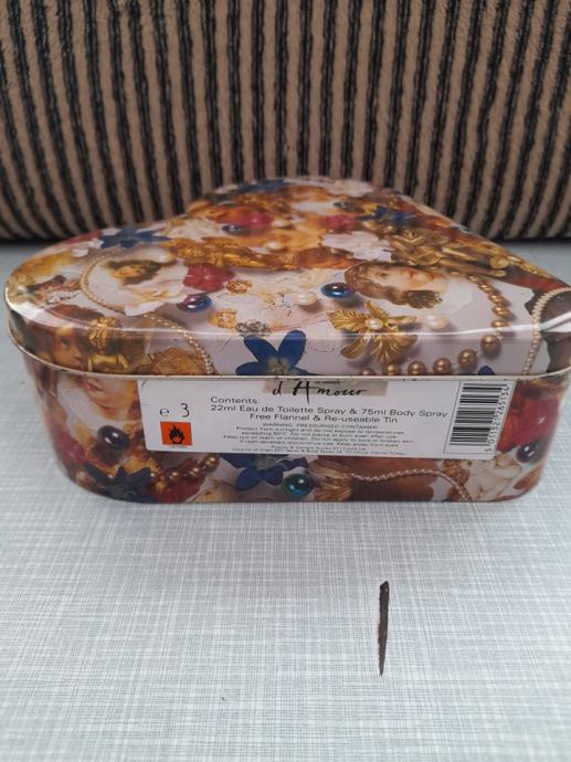 ukrasna metalna kutija sa 22 ml toilette spray 8 75 ml body spray