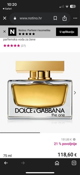 Prodajem orginal parfem, Dolce&Gabbana the one 75 ml bez kutije.slika br 2 cijena u parfumeriji