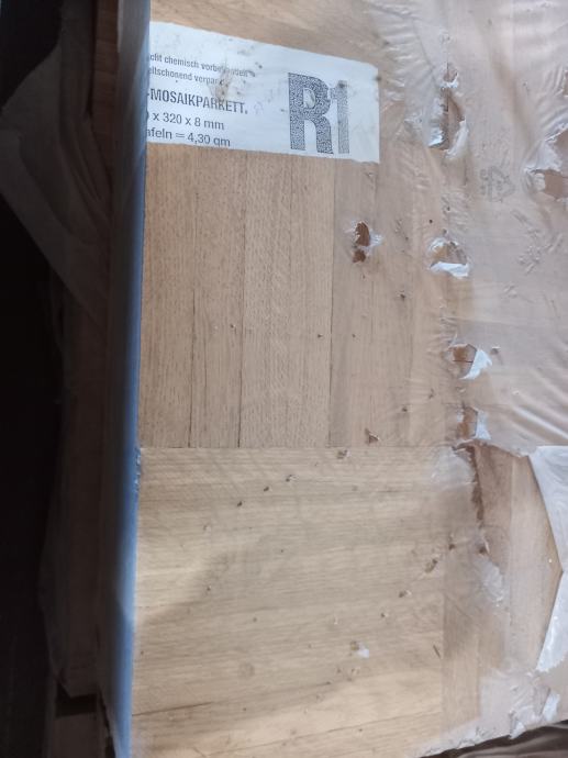 Lamel parket od hrasta puno drvo, njemačke proizvodnje 640×320×8mm. 5 paketa po 4.8m2 ukupno 21.5m2. Cijena 15€/m2