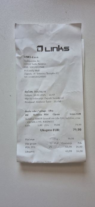 Prodajem navedene Bluetooth slušalice, kupljene u 1. mj 2025, plaćene 80€