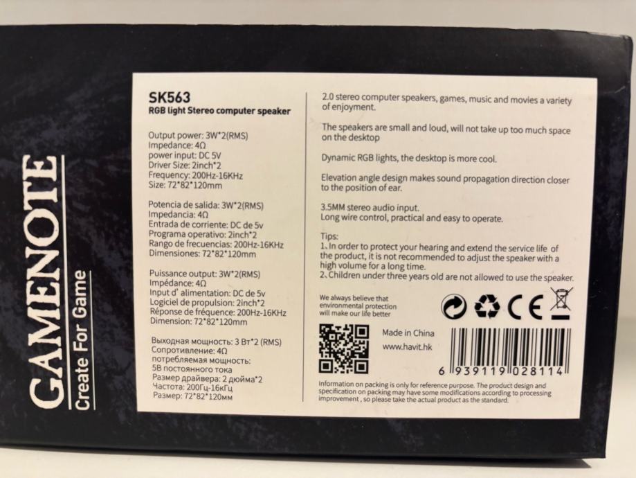 Havit Gamenote zvučnici s podesivom glasnoćom, RGB