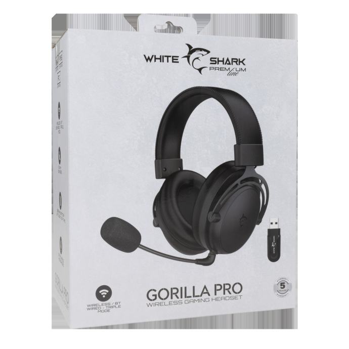 White Shark Gorilla Pro bežične slušalice dizajnirane su za gamere koji zahtijevaju precizan zvuk i vrhunsku udobnost. Stabilna bežična veza pruža slobodu kretanja, dok snažni driveri omogućuju bogat zvuk s dubokim basovima. Čvrsta konstrukcija i ergonomski dizajn osiguravaju dugotrajnu upotrebu, a crna boja daje profesionalan i moderan izgled.