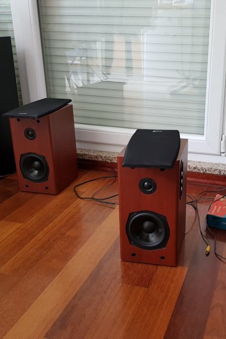 Na prodaju ispravni i dobro očuvani zvučnici, po mnogima najbolji koje je Genius ikada proizveo. 80W RMS snage, masivni i kvalitetno napravljeni, što pokazuje i masa od nekakvih 8 kg. Iznimno su glasni, pozornica im je za PC zvučnike izvrsna. Ispod svakog zvučnika nalaze se male gumene nogice koje spriječavaju prenošenje vibracija, a naknadno su ugrađeni i nosači na poleđini, pa ih možete montirati negdje na zid.