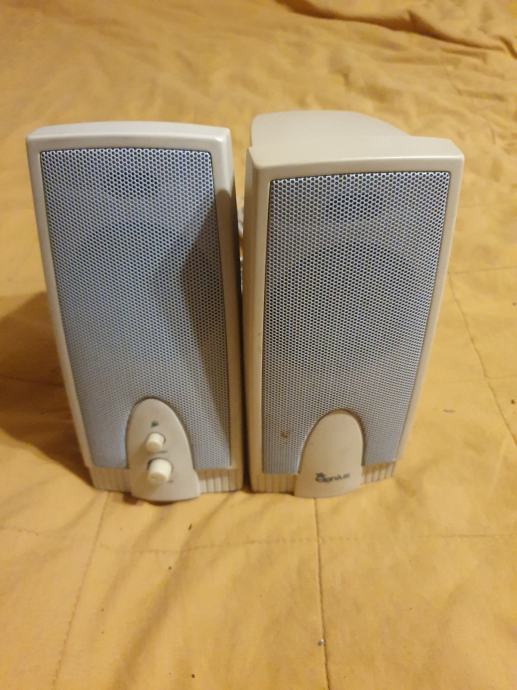 Zvučnici su korišteni, ali još uvijek rade vrlo dobro. Imaju zaseban kotačić za regulaciju glasnoće i dolaze s priključkom za napajanje i 3.5 mm audio jack.