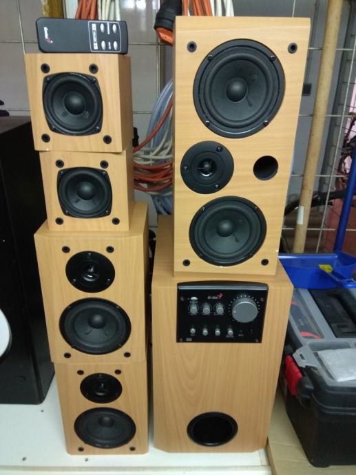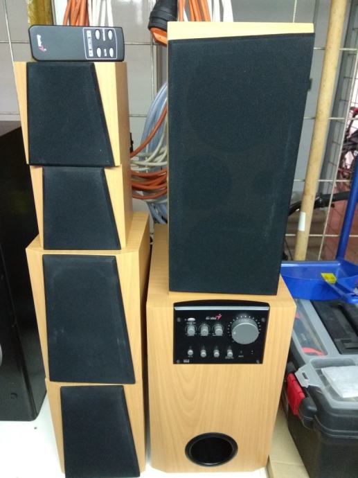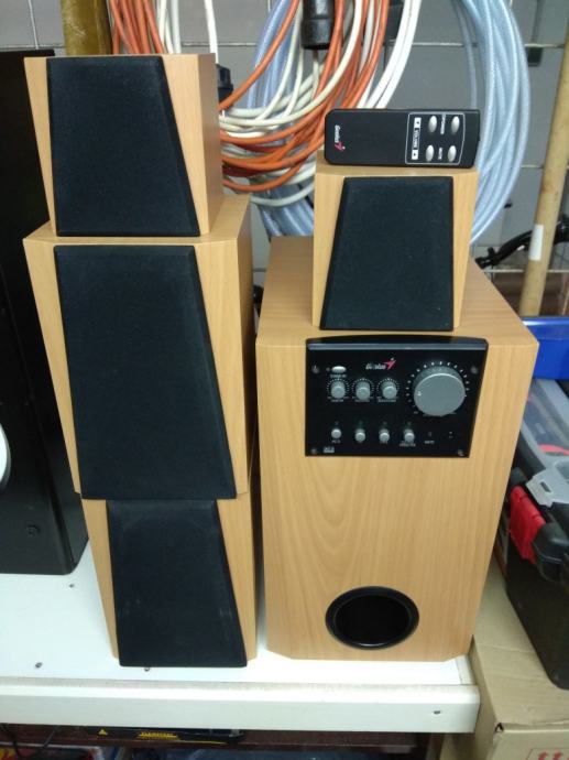 Prodajem navedene zvučnike, polu ispravni, ne radi centralni zvučnik, znaci izlaz je neispravan zvučnik je ispravan, i kada se ugase na daljinski gasi se samo subwofer, inače je zvuk odličan, možete spojiti svaki uređaj sa 3.5 mm jackom znaci tablet, mobitel, TV, DVD, Playstation, kompjuter itd, mogućnost probe prije kupnje