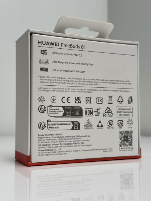 - Vrijeme rada bijele baterije ovog Huawei FreeBuds 6i je do 35 sati