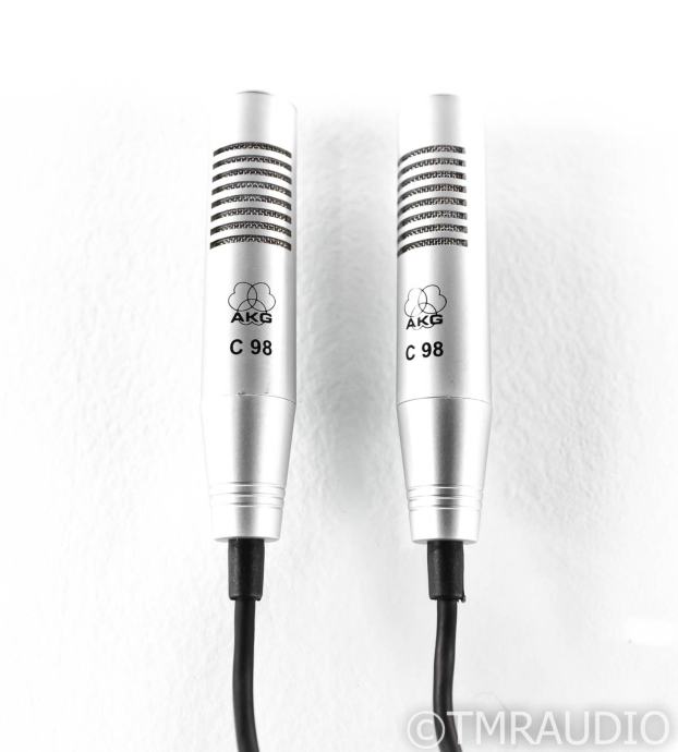 AKG C 98 je stereo mikrofonski komplet za profesionalno snimanje ili vrhunski konferencijski sistem . Uz mikrofone se isporučuju dva komada stolnih stativa za mikrofon AKG ST1 ( metalna verzija, sklopiva , rasklopljena visina 9,5 cm, promjer 26 cm.) po cijeno od 40,00 eura. Na raspolaganju je više komada . Za kupovinu dva ili više sistema cijena je snižena . Proizvedeno u Austriji . Napomena : pogledajte cijene na webu !