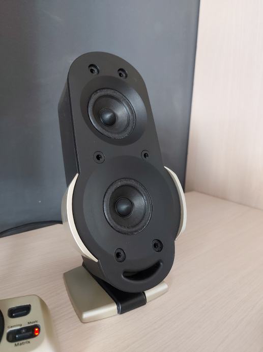 Odlična kvaliteta zvuka, korišten kao 2.1 sistem za pc, ostali zvučnici nisu korišteni.