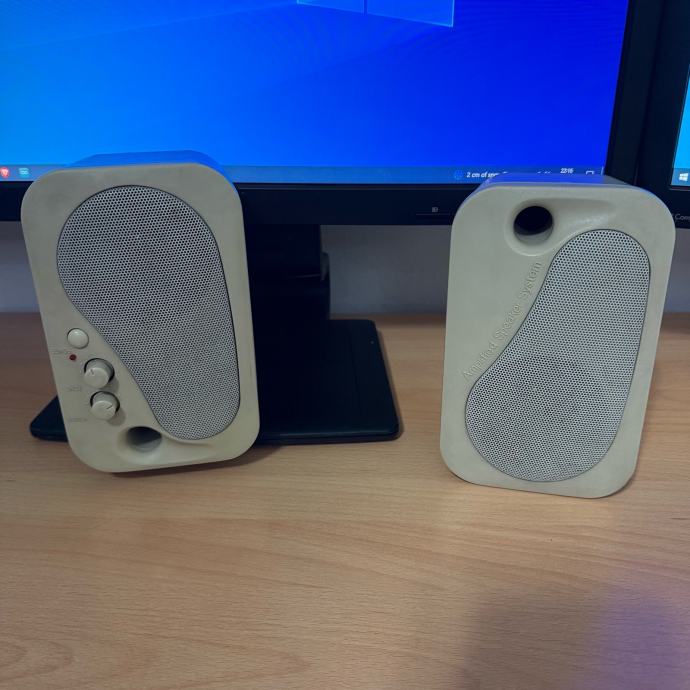 PC zvučnici, napajaju se preko 230V utikača za struju te imaju 3.5mm konektor za zvuk.