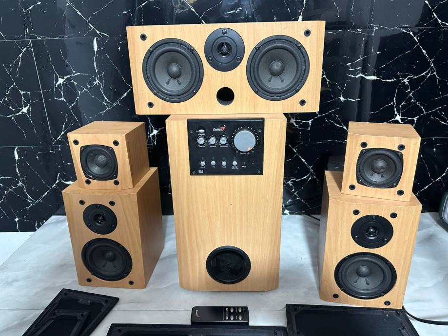Set Genius drveni zvucnici i woofer+daljinski,pali se,mislim i da sve radi,ali treba sve spojiti