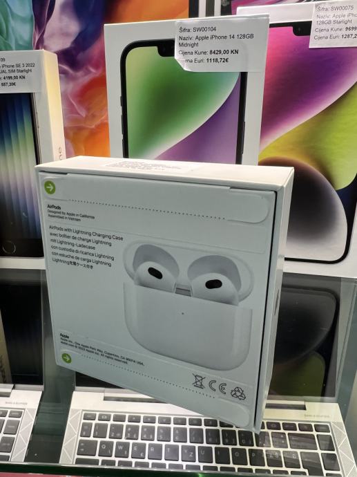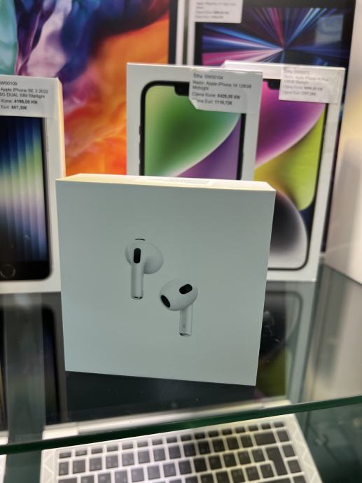 Slušalice APPLE AirPods 3. generacija, s lightning kutijicom za punjenje, TWS, bijele (mpny3zm/a), odmah dostupno na prodajnom mjestu.