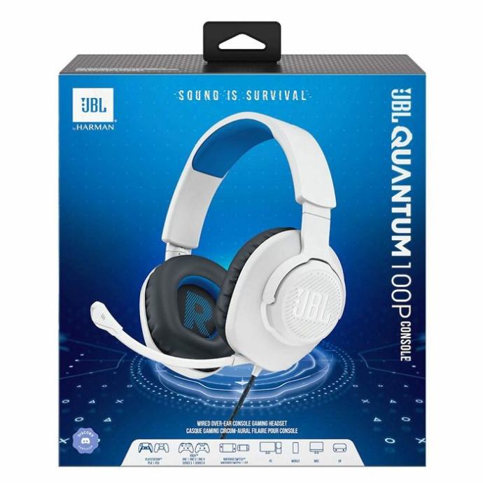 Slušalice JBL Quantum 100P Console, PC/PS4/PS5, 3.5 mm, bijelo/ plave