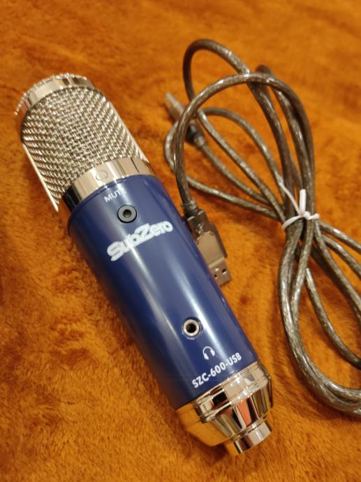 SubZero SZC-600-USB visokokvalitetni plug and play kondenzatorski USB mikrofon, sa širokim frekvencijskim odzivom. Ima tipku za isključivanje zvuka i priključak za slušalice. Odličan za snimanje, podcast i streaming.