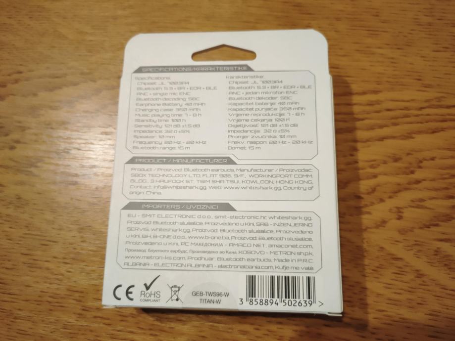 White Shark Titan white earbuds, bežične Bluetooth slušalice, nove, zapakirane, nikad otvarane.