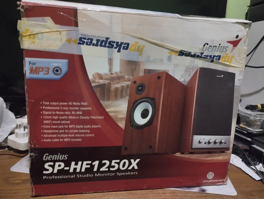 Prodajem aktivne zvučnike Genius SP-HF1250X,kvalitetno napravljene kutije(dimenzije: visina 33 cm,širina 18 cm,dubina 20cm,sveukupna težina oba zvučnika oko 9-10 kg),3.5 mm aux sa prednje strane,ulaz za slušalice,chincevi sa stražnje strane,dolazi sa potrebnim kablovima,ambalaža,stanje vidljivo na slikama.