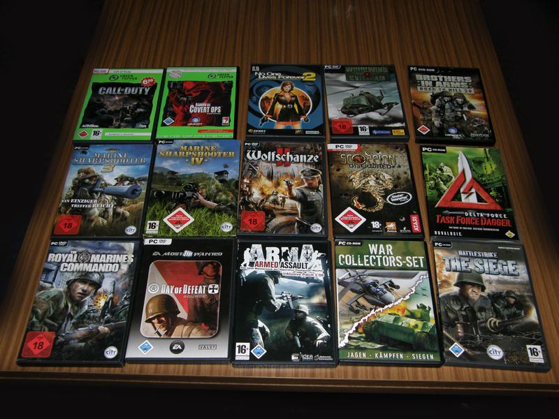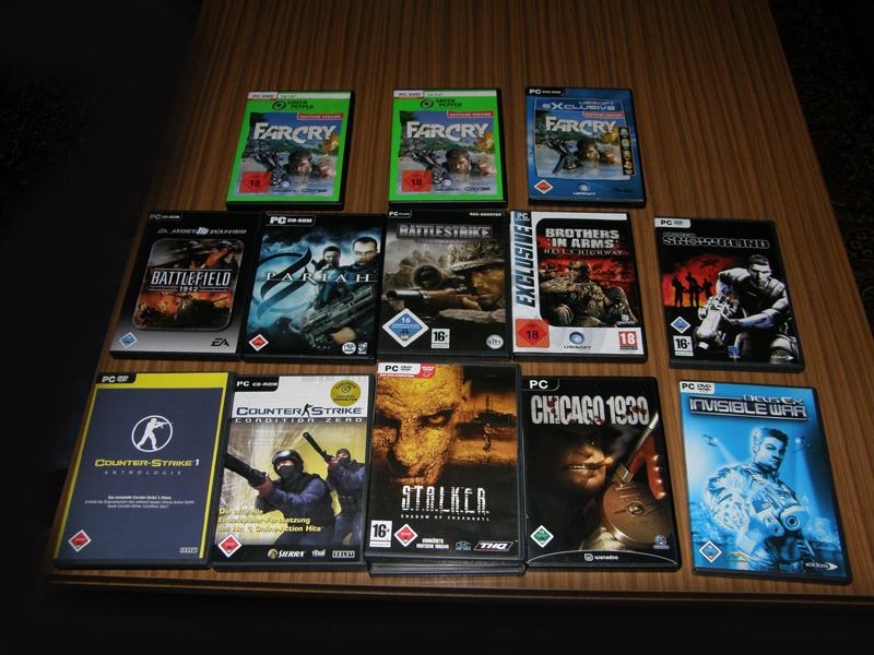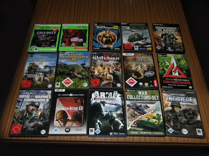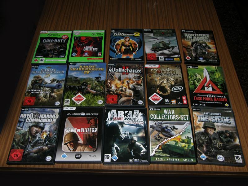 Rasprodaje se veća količina pucački PC igara različitih žanrova (povijesne, sadašnje vrijeme, bliska i daleka budućnost, postapokaliptične itd.) cca. 50 kom.