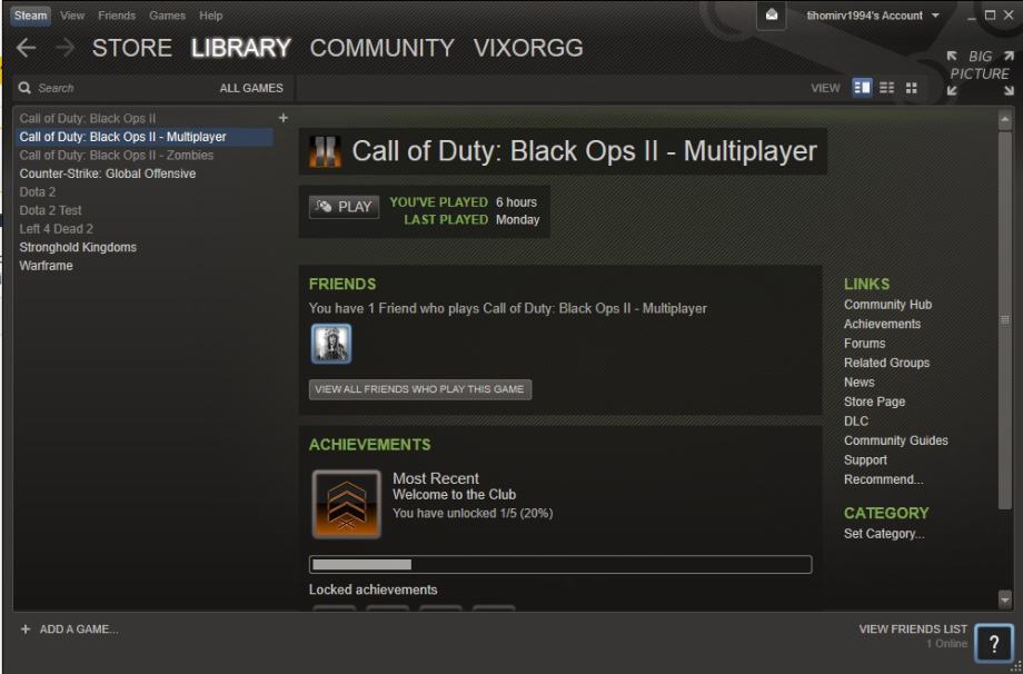 Steam acc sadrži Call of Duty Black Ops II, CS:GO, lfd2 i ovo ostale na slici su free igre kao što možete vidjeti