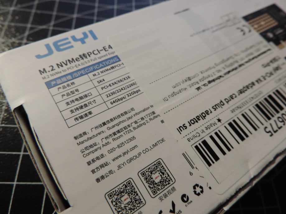 JEYI M.2 NVMe to PCIe 4.0/3.0 x4 ADAPTER