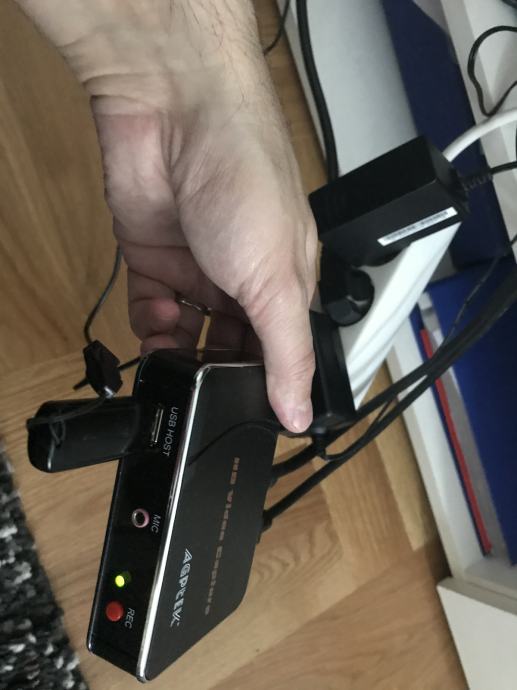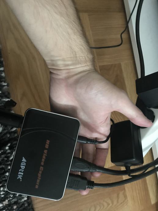 Portovi : struja, HDMI in, HDMI out, audio in (3.5 mm), USB za pohranu podataka,, LED indikator snimanja, tipka za pokretanje/prekidanje snimanja.