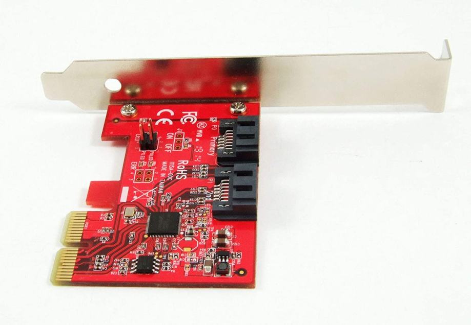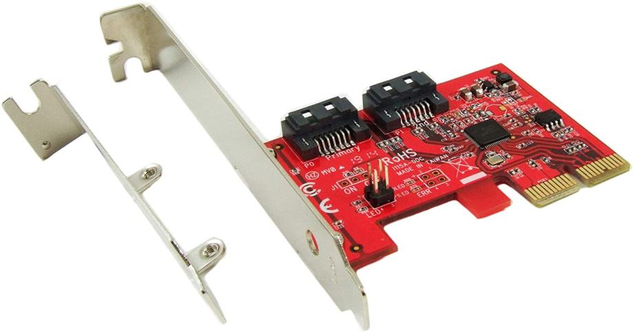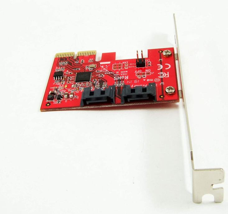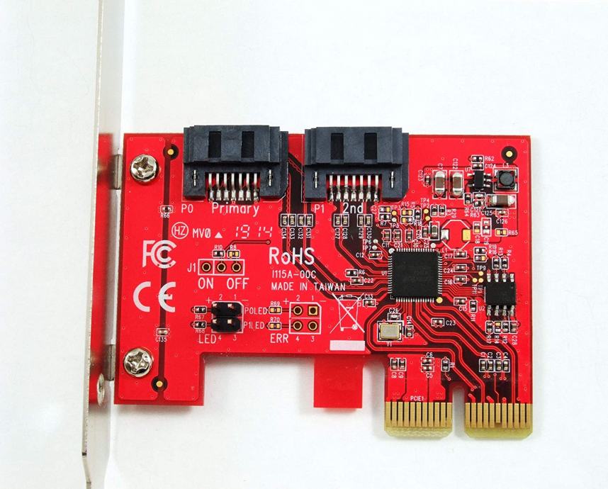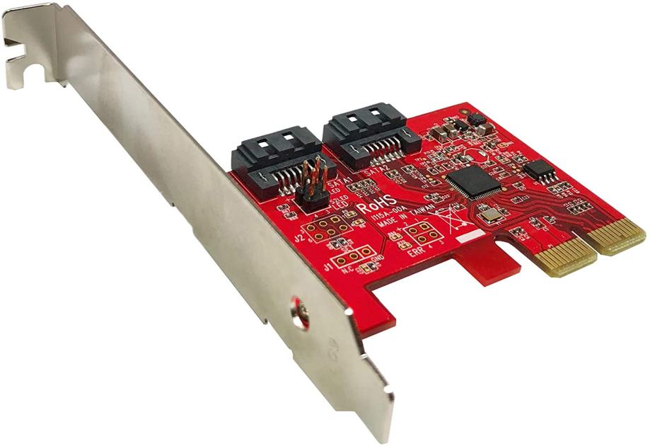 Add two SATA 6G ports with up to 6 Gbps data rate to your computer /// 2 x SATA (7 pin; DATA) Plug /// PCIe 2.0 x2 Lanes; Up to 6 Gbps (SATA III) /// Chipset: ASMedia ASM1062 /// No driver installation is required on Windows, Mac, and Linux systems. The AHCI drivers are natively built-in on most Operating Systems /// Supports SATA III transfer speeds up to 6.0Gbps; backward compatible with SATA I/II at 1.5/3.0Gbps