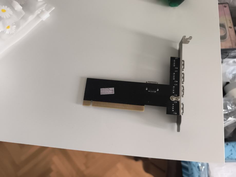 Prodajem rabljeni PCI USB kontroler koji se ugrađuje u PCI utor na matičnoj ploči. Kartica nudi više USB priključaka, uključujući vanjske i jedan interni. Na ploči se nalazi VIA čipset. Odgovara starijim desktop računalima s dostupnim PCI utorom.