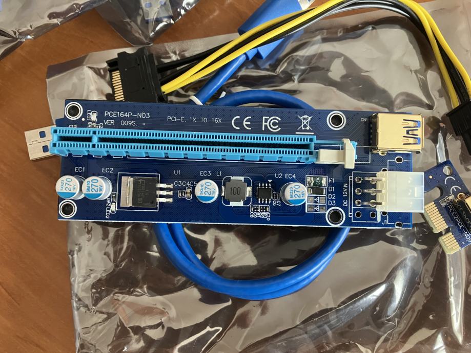 PCI-E 1x to 16x Powered USB 3.0 Extender Riser Adapter Card version 009S