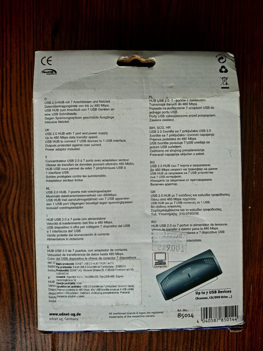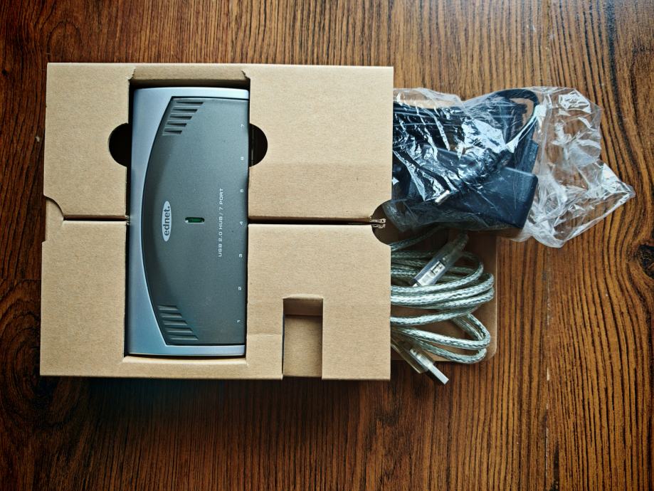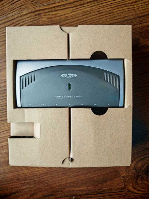 USB hub za proširenje USB 2.0 portova, novo, zapakirano u tvorničko pakiranje, otvoreno zbog slikanja.
