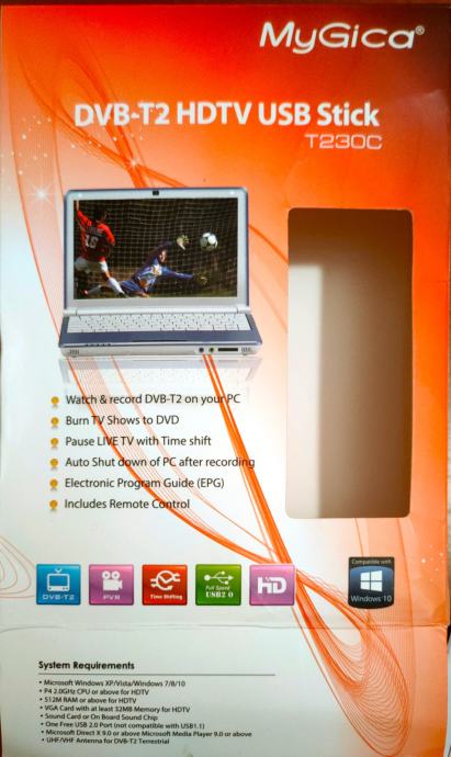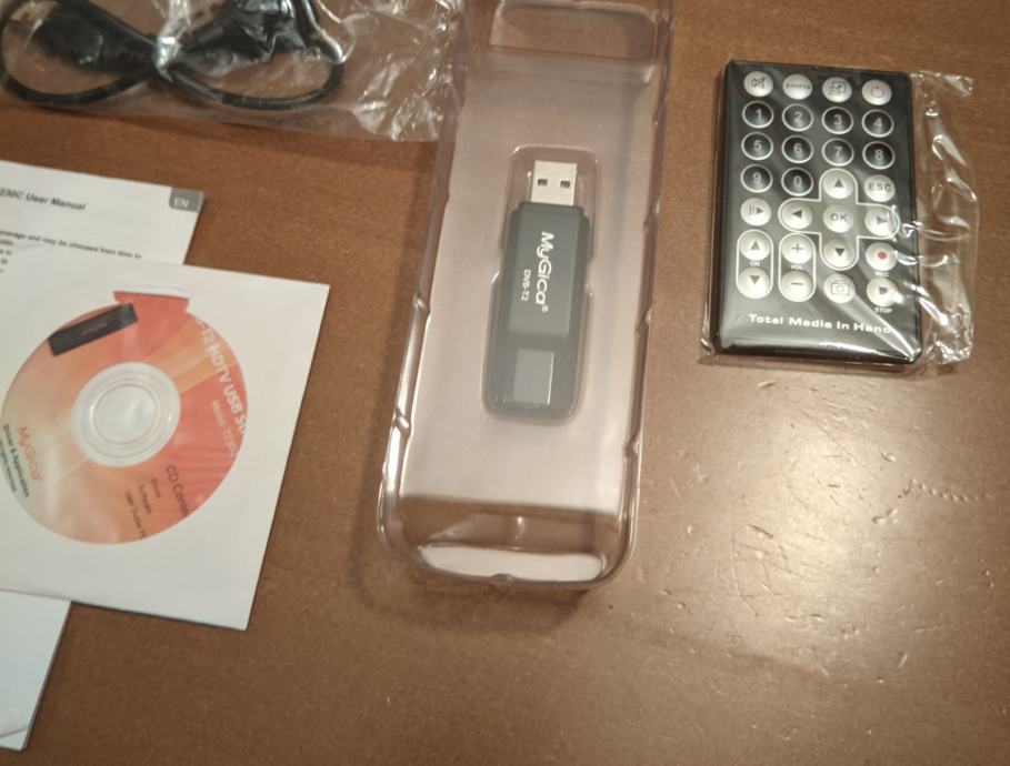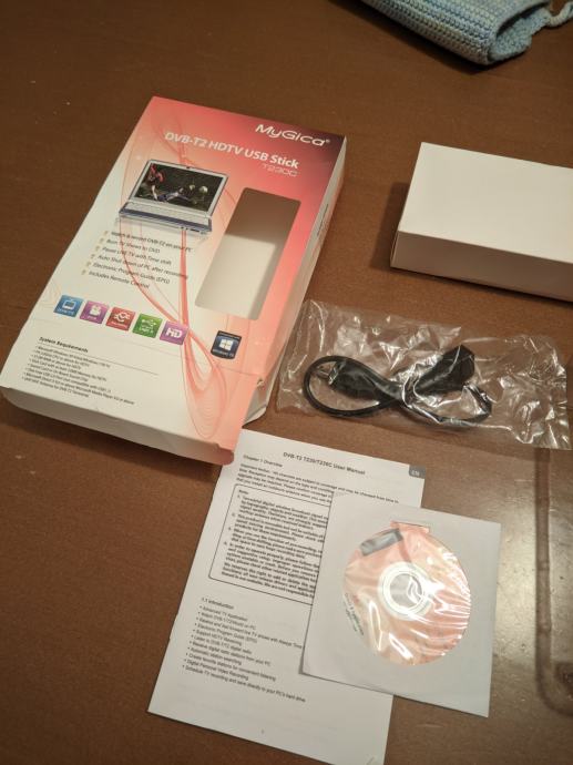 U paketu dolazi kao što je na slikama: USB stick, produžni USB kabel (nekorišten, neotpakiran), CD s driverom i softverom (nikad korišten) i daljinski za softver s CDa (nikad otpakiran niti korišten).