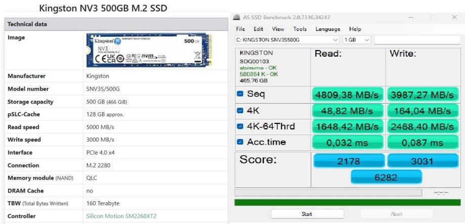 SSD: 500GB M.2 Hyper NVMe PCIe Gen4 Kingston NV3