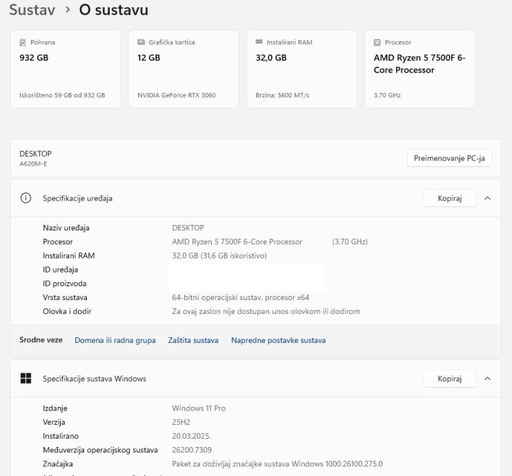 CPU: AMD Ryzen 5 7500F 6Core/12 Thread 3.70 - 5.00GHz Boost