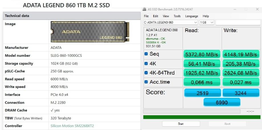 SSD: 1TB M.2 Hyper NVMe PCIe Gen4 ADATA LEGEND 860