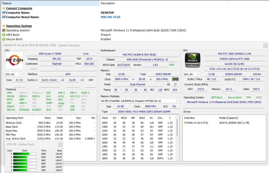 32GB DDR5 Ryzen 5 7500F *RTX 3060 12GB *1TB NVMe SSD