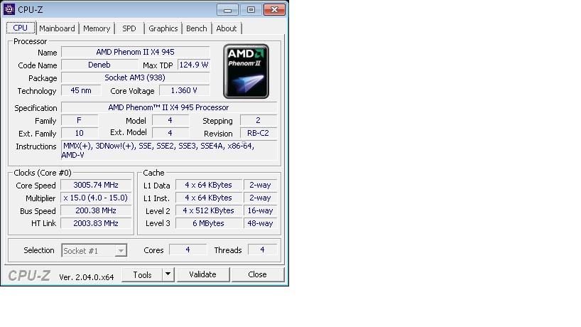 CPU AMD Phenom(tm) II X4 (4 Cores x 3.0GHz)