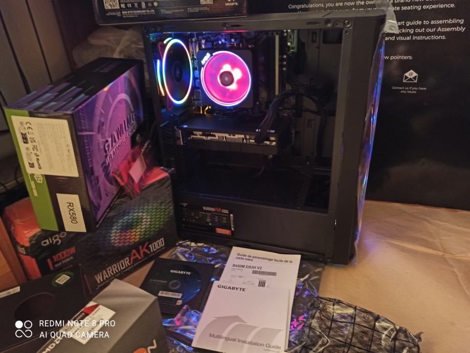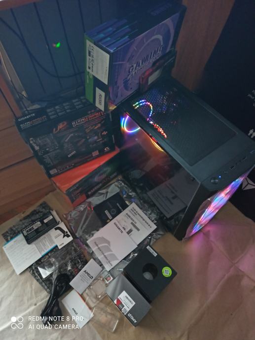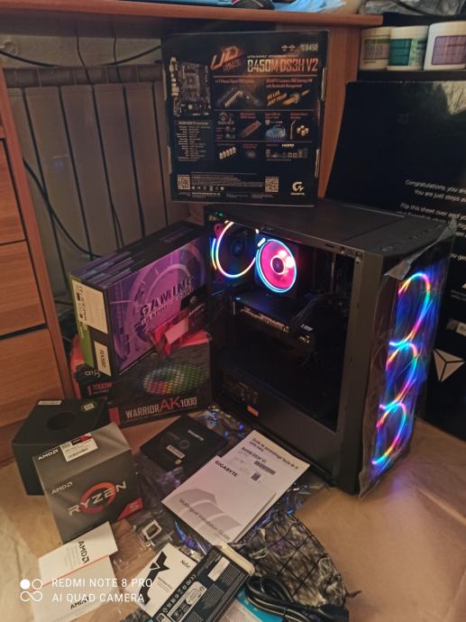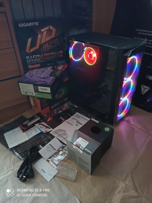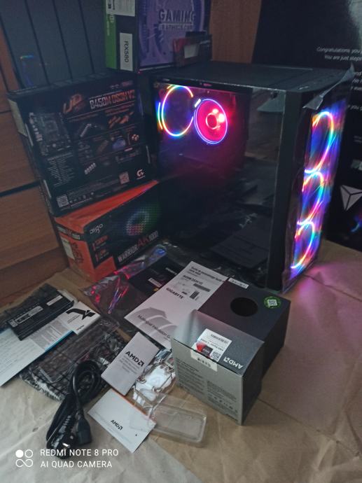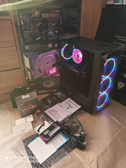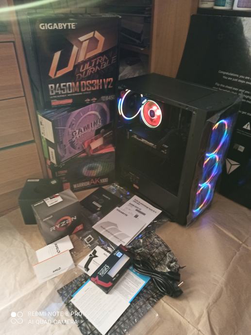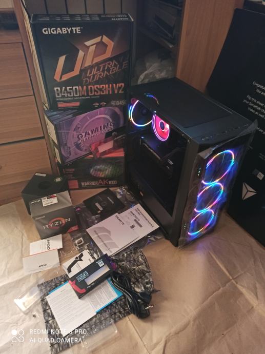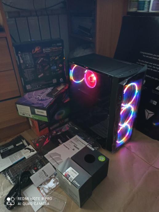 NOVI SUPERPOVOLJNI ZA 515EURA(AKO ŽELITE SA SVOJOM GRAFIČKOM)ILI ZA 599EURA KAO U NASLOVU I NA SLIKAMA SA GAMING PROCESOROM AMD RYZEN 5 3500X 6 x 3,6-4,1 GHZ SA AMD RGB HLADNJAKOM,GIGABYTE B450 MATIČNOM PLOČOM SA AMD STORE MI TEHNOLOGIJOM,16(32)GB 3200MHZ DDR4 SA HLADNJAKOM,BRZIM M.2 NVME SSD OD 500GB-3500MB/S,SA AMD RADEON RX580 8GB,256-bit,SP2048,RGB NAPAJANJEM OD 1000W I WINDOWS 11PRO.