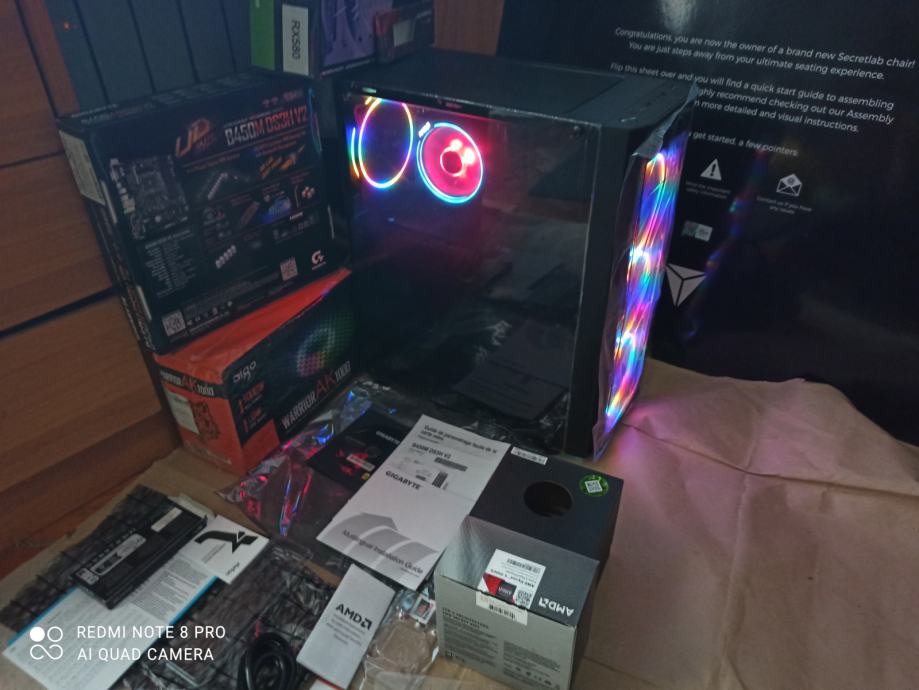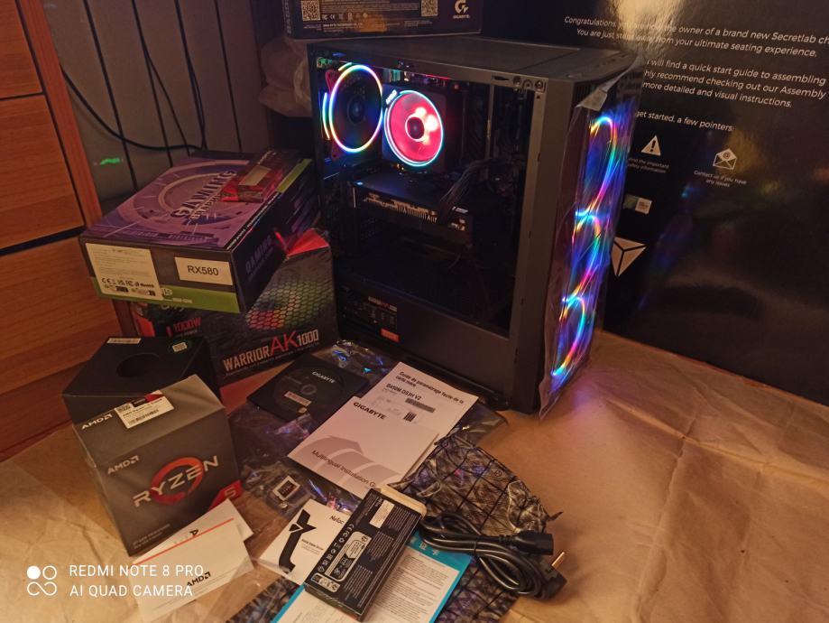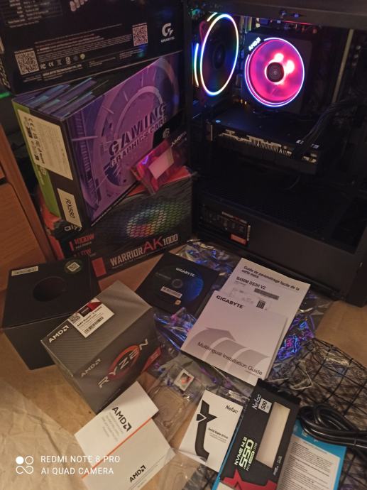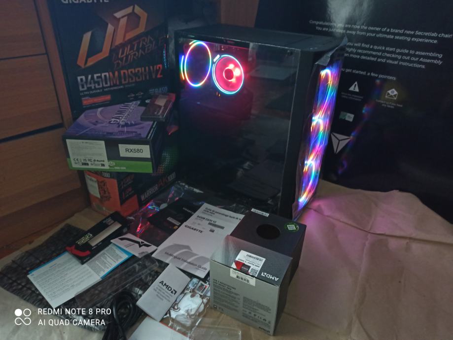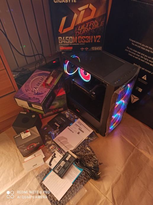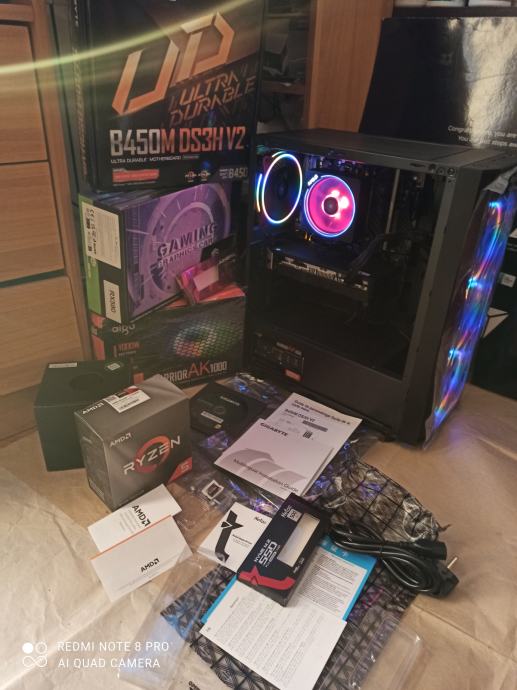 NOVI SUPERPOVOLJNI ZA 515EURA(AKO ŽELITE SA SVOJOM GRAFIČKOM)ILI ZA 599EURA KAO U NASLOVU I NA SLIKAMA SA GAMING PROCESOROM AMD RYZEN 5 3500X 6 x 3,6-4,1 GHZ SA AMD RGB HLADNJAKOM,GIGABYTE B450 MATIČNOM PLOČOM SA AMD STORE MI TEHNOLOGIJOM,16(32)GB 3200MHZ DDR4 SA HLADNJAKOM,BRZIM M.2 NVME SSD OD 500GB-3500MB/S,SA AMD RADEON RX580 8GB,256-bit,SP2048,RGB NAPAJANJEM OD 1000W I WINDOWS 11PRO.