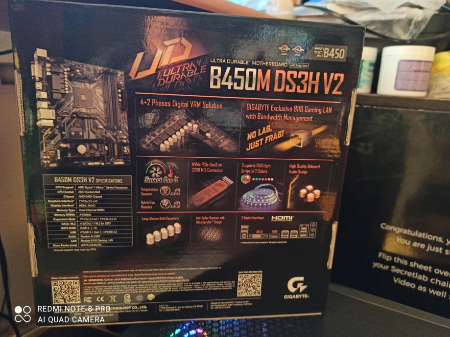Gigabyte B450 DS3H V2 ULTRA DURABLE-podržava tehnologiju ubrzane pohrane i brz pristup AMD StoreMI-Snažan alat koji kombinira brzinu vašeg SSD-a s kapacitetom vašeg tvrdog diska u jedan, brz pogon kojim se lako upravlja, tehnologija AMD StoreMI "kombinira" ove dvije vrste pohrane u jedan pogon i automatski premješta podatke najviše pristupate SSD-u, tako da dobivate najbolje od oba svijeta,4 utora za DDR4 memoriju do 128GB,podržava 2 grafičke kartice...NOVO 3 godine garancije