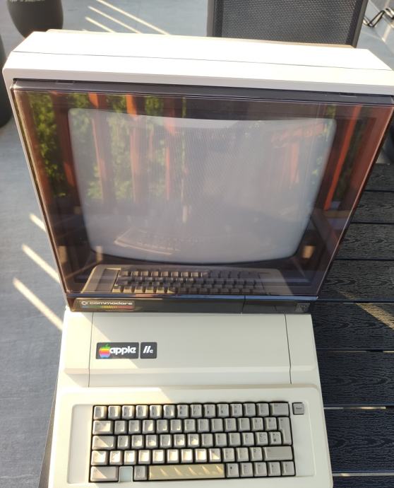 Apple IIe računalo - ispravno - stanje vidljivo na slikama. Stanje dodatnih kartica - 64kb ekspanzija, CP/M kartica, disk II controller card itd.