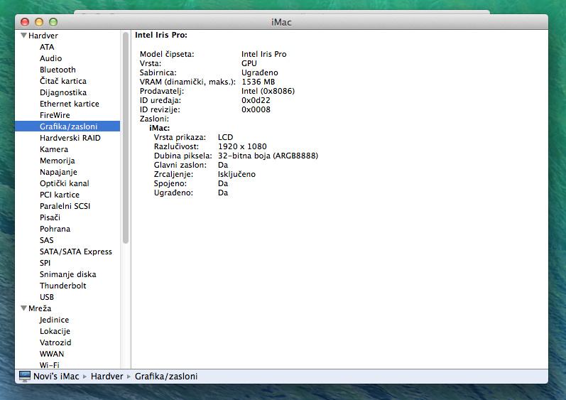 - Grafika: Intel Iris PRO 1536 MB – odlična za video i grafičke aplikacije